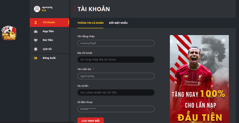 Anh em nên kiểm tra lại toàn bộ thông tin mình đã cung cấp cho nhà cái một lần nữa bằng cách click vào mục “Tài khoản” trong Dabet. Toàn bộ các mục như tên đăng nhập, tên hiển thị, số điện thoại đều được xuất hiện tại đây. Các bác xem lại nếu không đúng thì liên hệ ngay với nhà cái để giải quyết.
